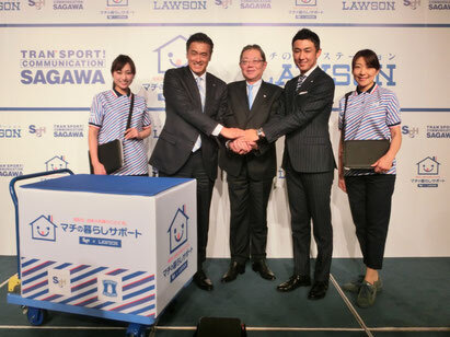 6月に共同事業会社を立ち上げ、荷物配送の受託やローソン店舗の商品配送、ライフサポートサービスの取り次ぎなど「マチのあらゆるニーズにワンストップで対応する」新業態の確立を目指していく。このほか7月から全国約1万2千のローソン店舗で、佐川急便の荷物を受け取れるサービスを開始する。