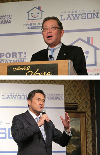 「地域密着のインフラ充実化のため、ローソン店舗の活用はベスト」と語る町田社長(上)・「お客様により近づいていく」と語る玉塚社長(下)