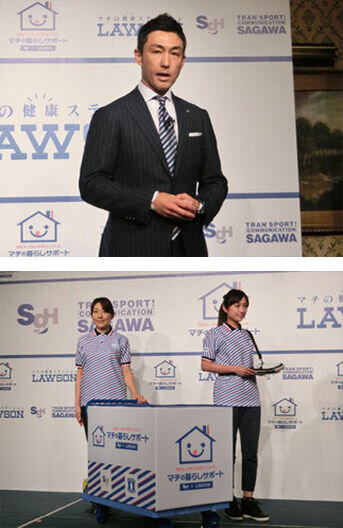 会見にはSGホールディングスの町田社長、ローソンの玉塚社長、SGローソンの社長に就任予定の野辺一也ローソン執行役員ホームコンビニエンス事業本部長が出席。