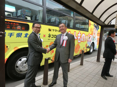 3日に盛岡駅前で開かれた出発式でヤマト運輸の長尾社長は、中山間地域では高齢化や過疎化が進み、生活を支える公共交通ネットワークの維持がより重要性を増しているとの考えを示した上で、物流事業者とバス事業者は生活インフラとしていかに生産性を高めるかが共通の課題になっていると強調。これまでトラックで輸送していた宅急便の一部を岩手県北バスに乗せ換えることで、長期的なネットワーク維持や生産性向上、CO2削減などにつなげていきたいとした。
