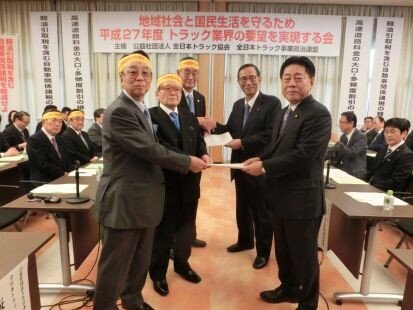 全日本トラック協会(星野良三会長)と全日本トラック事業政治連盟(坂本克己会長)は11日、東京都千代田区の憲政記念館で「地域社会と国民生活を守るため平成27年度トラック業界の要望を実現する会」を開催した。