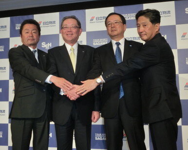 SGホールディングス(町田公志社長)と佐川急便(荒木秀夫社長)、日立物流(中谷康夫社長)は3月30日、佐川急便と日立物流の間で経営統合を視野に入れた戦略的資本業務提携契約を締結、同日都内で3社の社長および日立製作所の齊藤裕代表執行役執行役副社長が出席して記者会見を行った。